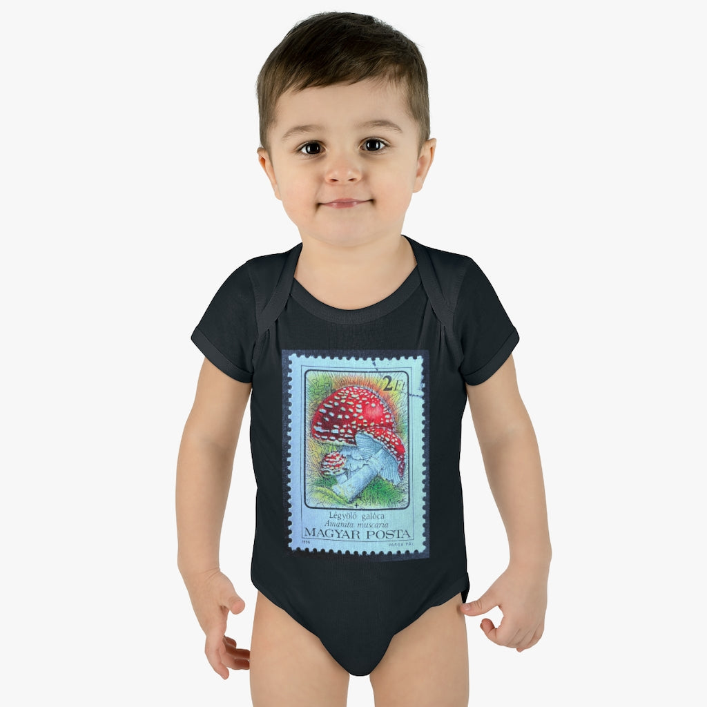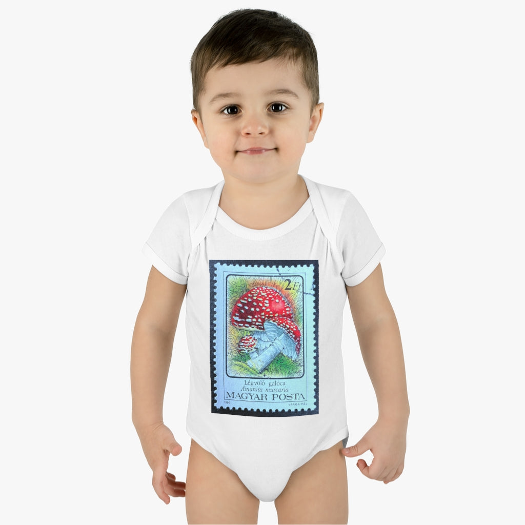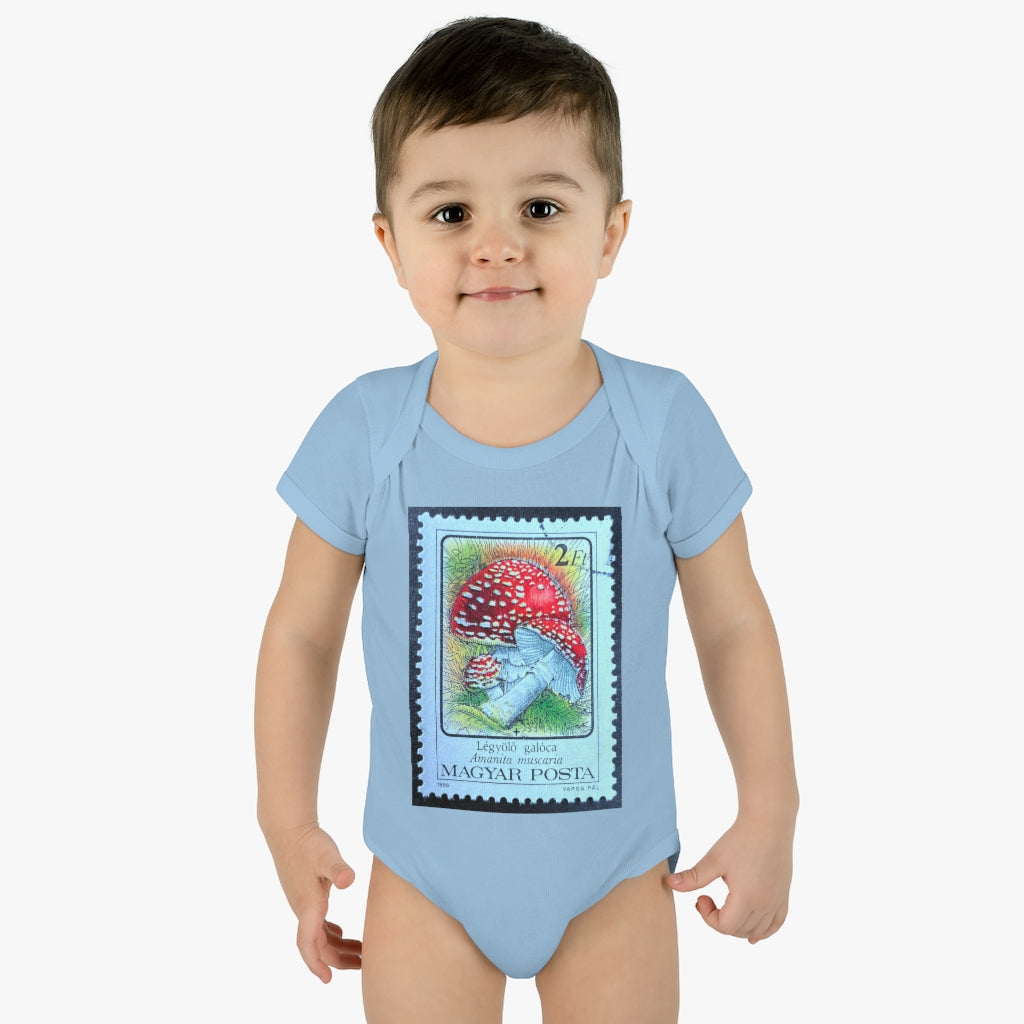 This Factory57 designed baby bodysuit is made from supremely soft cotton. Made as a one-piece design, these bodysuits have lap shoulders and tear away label. They are essential for the little ones, so why not do it in unique vintage style! As they grow you can continue the stamp trend as kid shirts, puzzles and more! NB (0-3M) 6M 12M 18M 24M Width, in 7.24 8.74 9.72 10.75 11.73 Length, in 10.75 11.73 12.76 13.74 14.76 Sleeve lenght, in 2.50 2.76 3.00 3.25 3.50