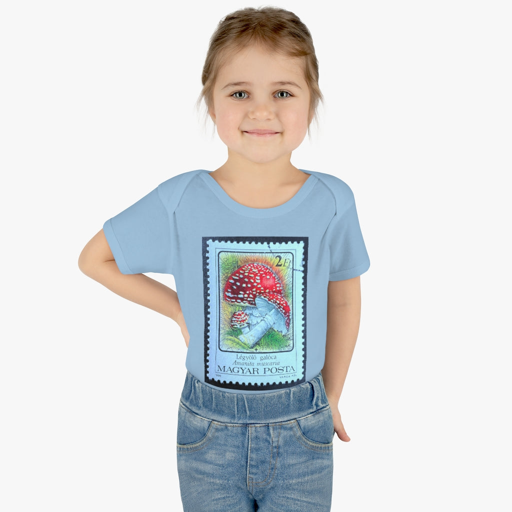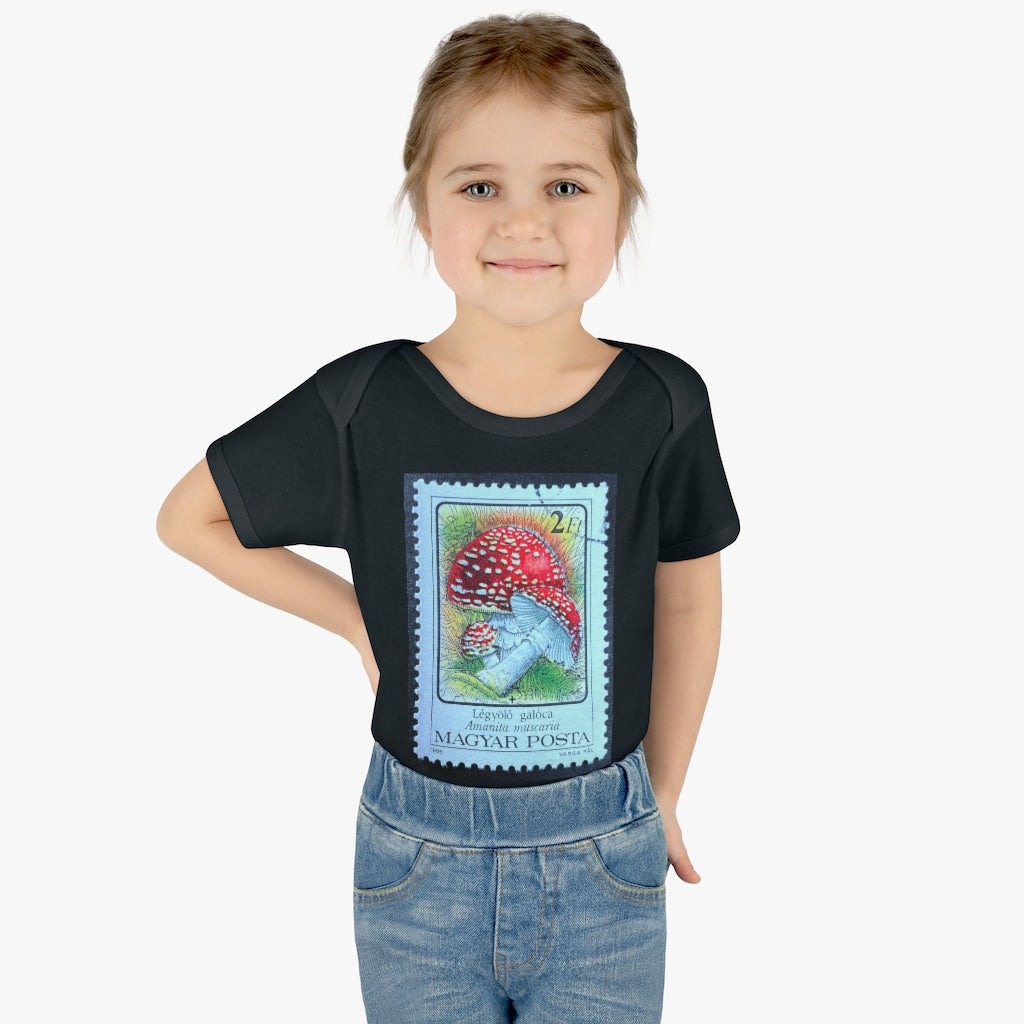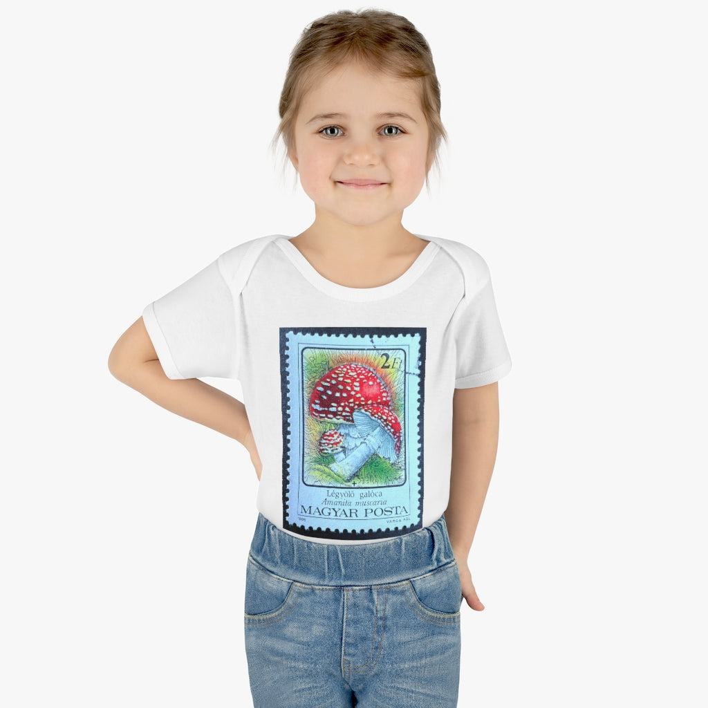 This Factory57 designed baby bodysuit is made from supremely soft cotton. Made as a one-piece design, these bodysuits have lap shoulders and tear away label. They are essential for the little ones, so why not do it in unique vintage style! As they grow you can continue the stamp trend as kid shirts, puzzles and more! NB (0-3M) 6M 12M 18M 24M Width, in 7.24 8.74 9.72 10.75 11.73 Length, in 10.75 11.73 12.76 13.74 14.76 Sleeve lenght, in 2.50 2.76 3.00 3.25 3.50