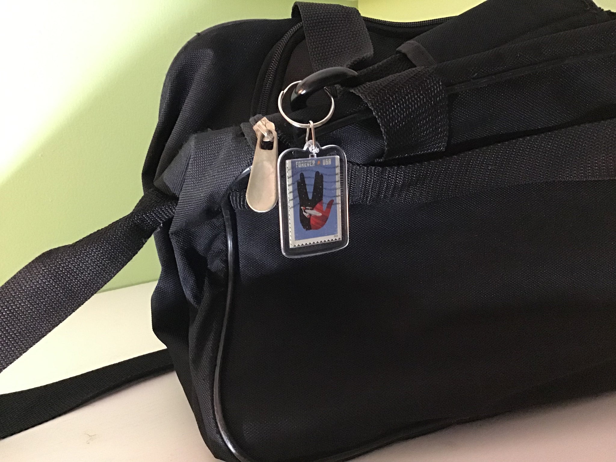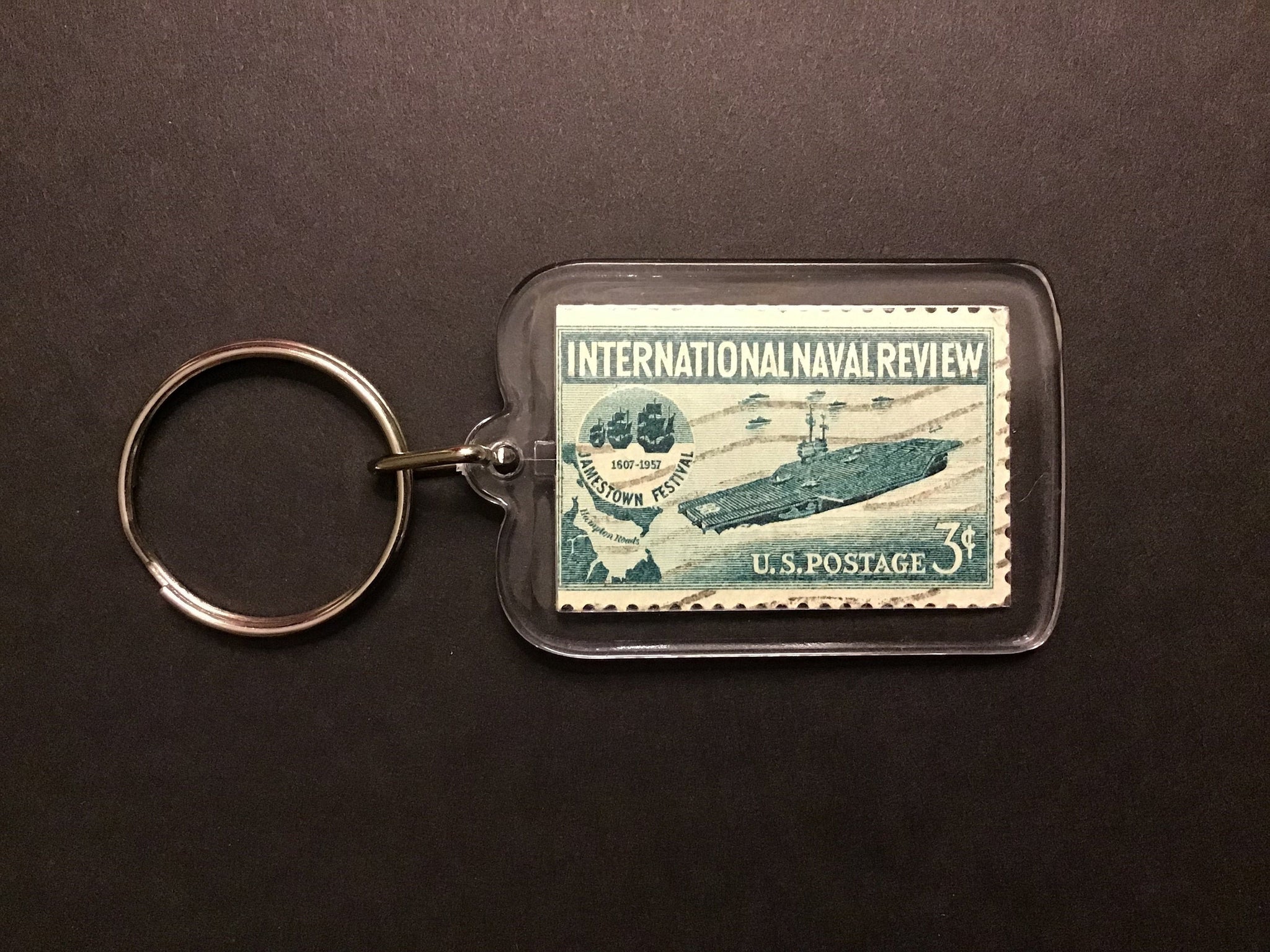 RECYCLED and HANDMADE: This unique keychain is handmade in Virginia, USA. We use real postage stamps that have traveled around the world and can now travel again with you!